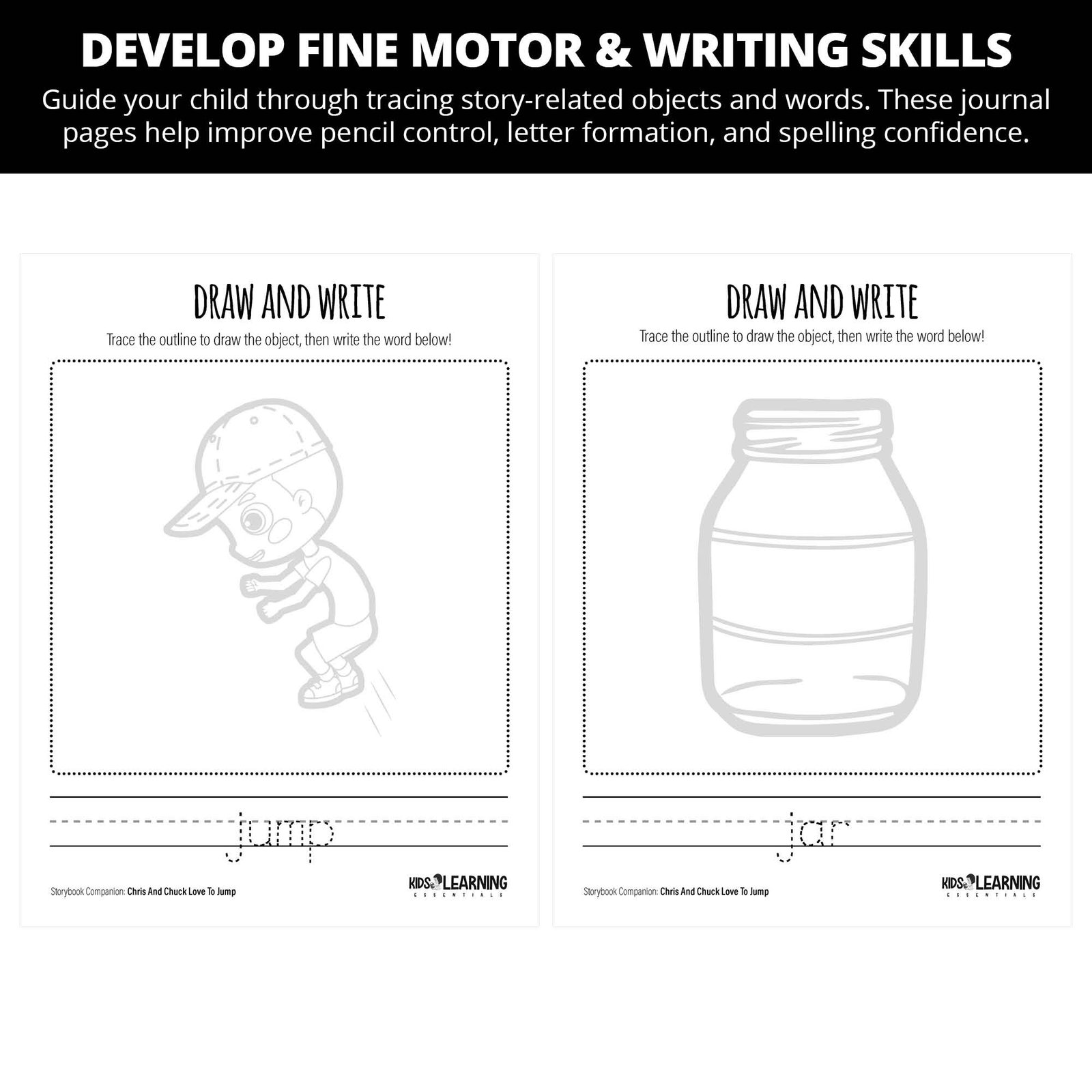 - Phonics, Handwriting, AND Social-Emotional Growth—All Together: Practice tracing “jump,” “jar,” “jaybird,” “jellyroll,” and more. Kids connect sounds, words, and actions—while building confidence every step of the way.