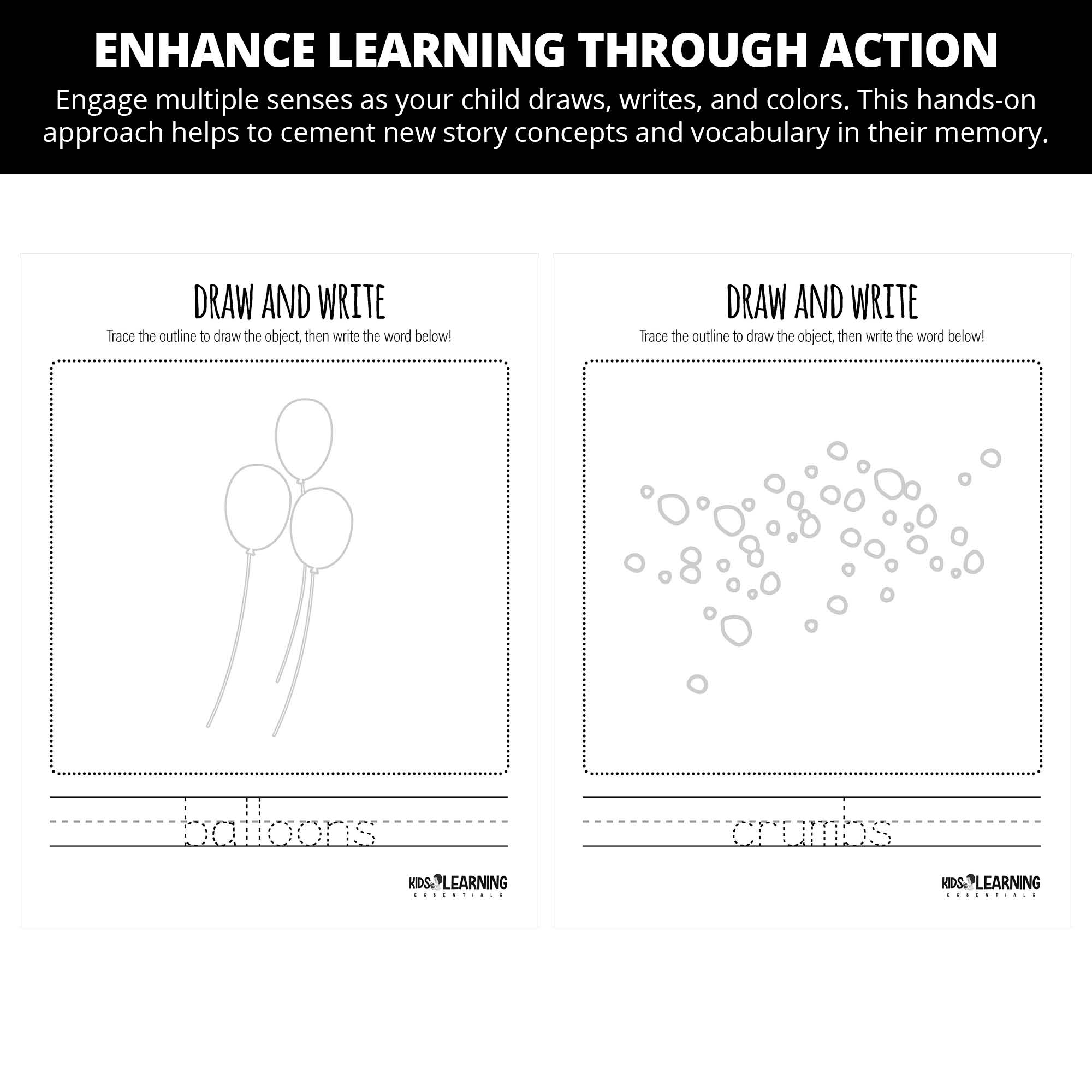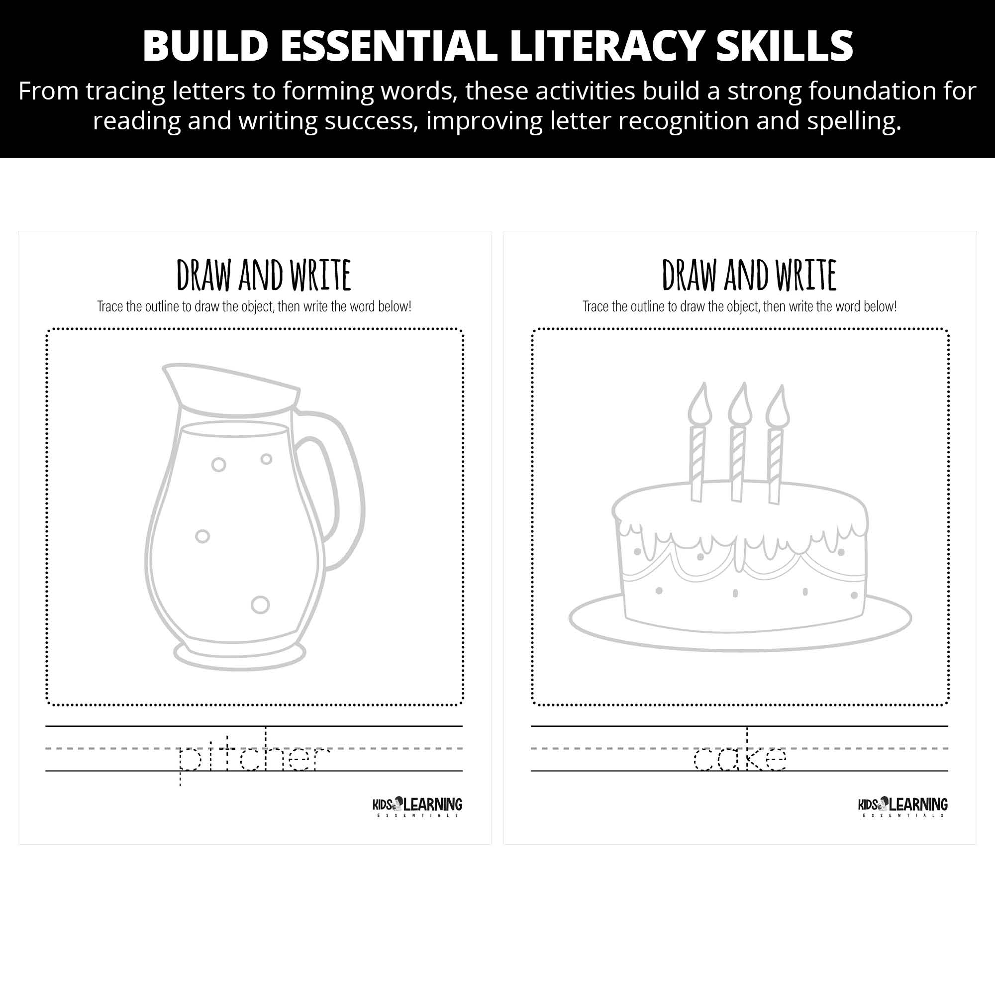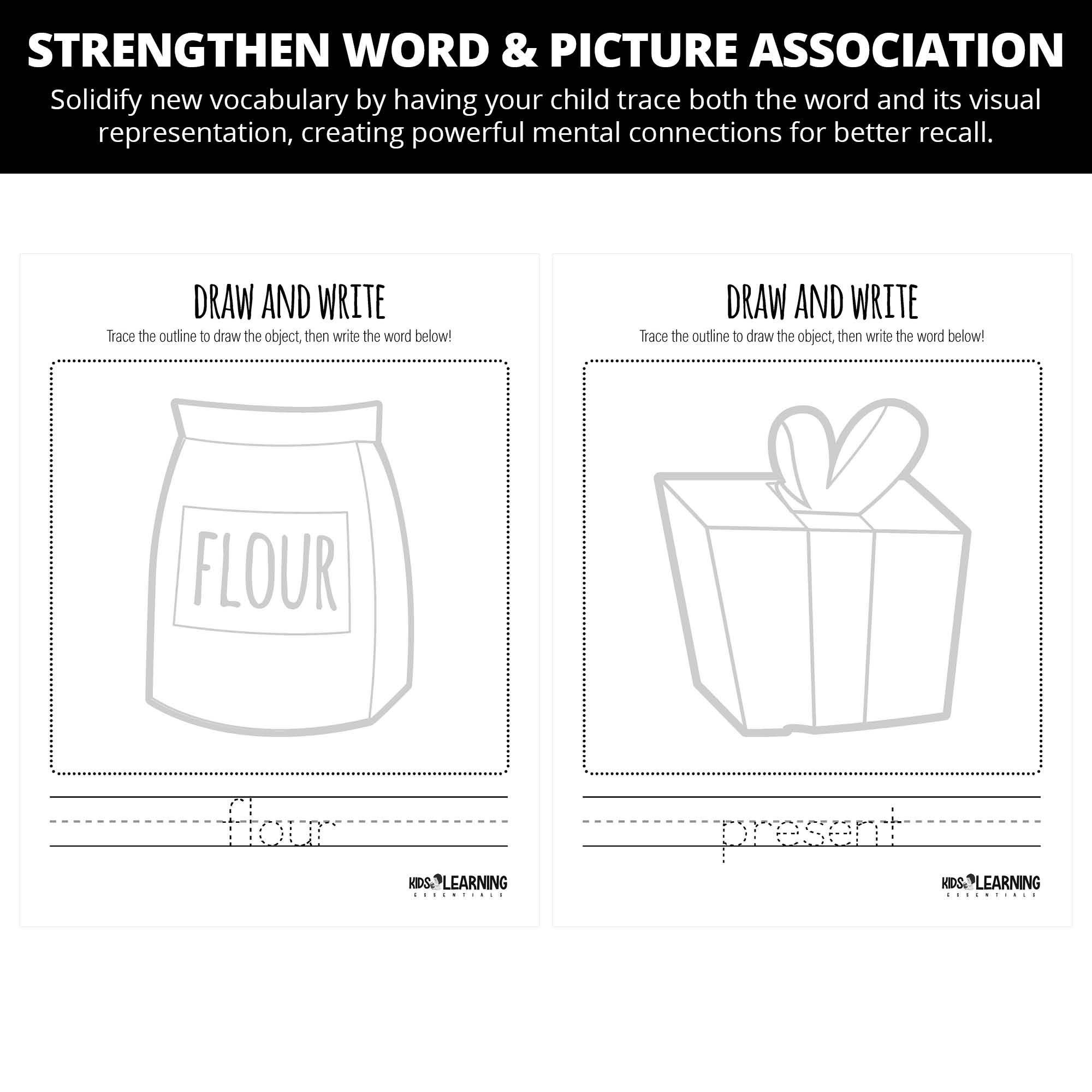 • Engage and Inspire with Traceable Art: Your child will love tracing pictures like “door,” “doughnuts,” and “dinner,” then writing each word—establishing an effective drawing-to-writing connection that enhances retention and excitement.