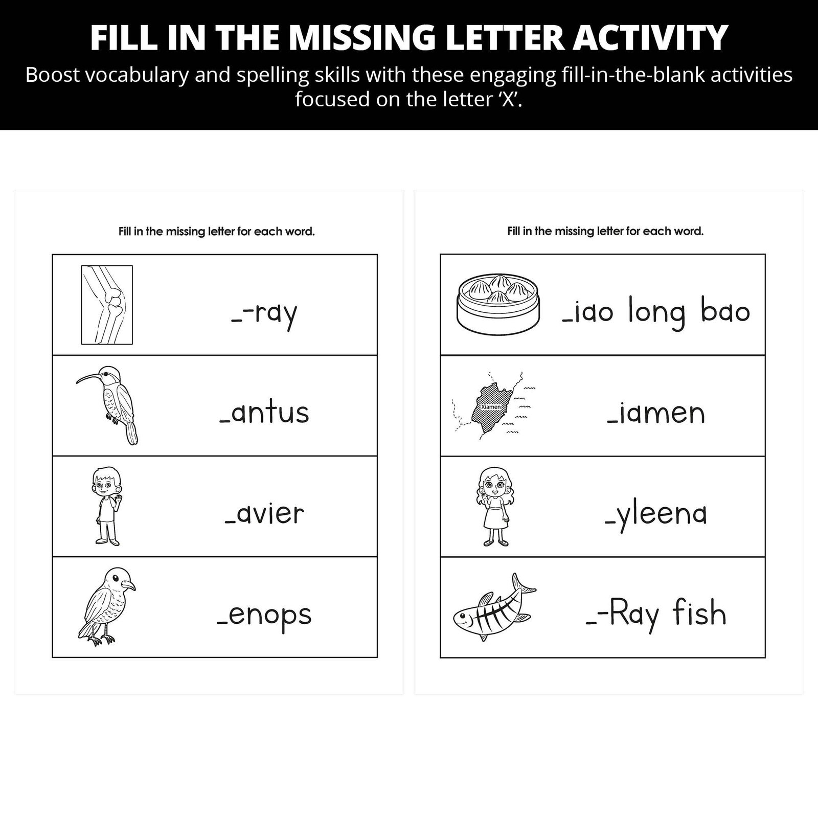 • Trace and practice “Xx” and real “X” words (X-ray, Xenops, Xantus, X-ray Fish, Xavier, Xiamen, Xiao Long Bao, and more!)