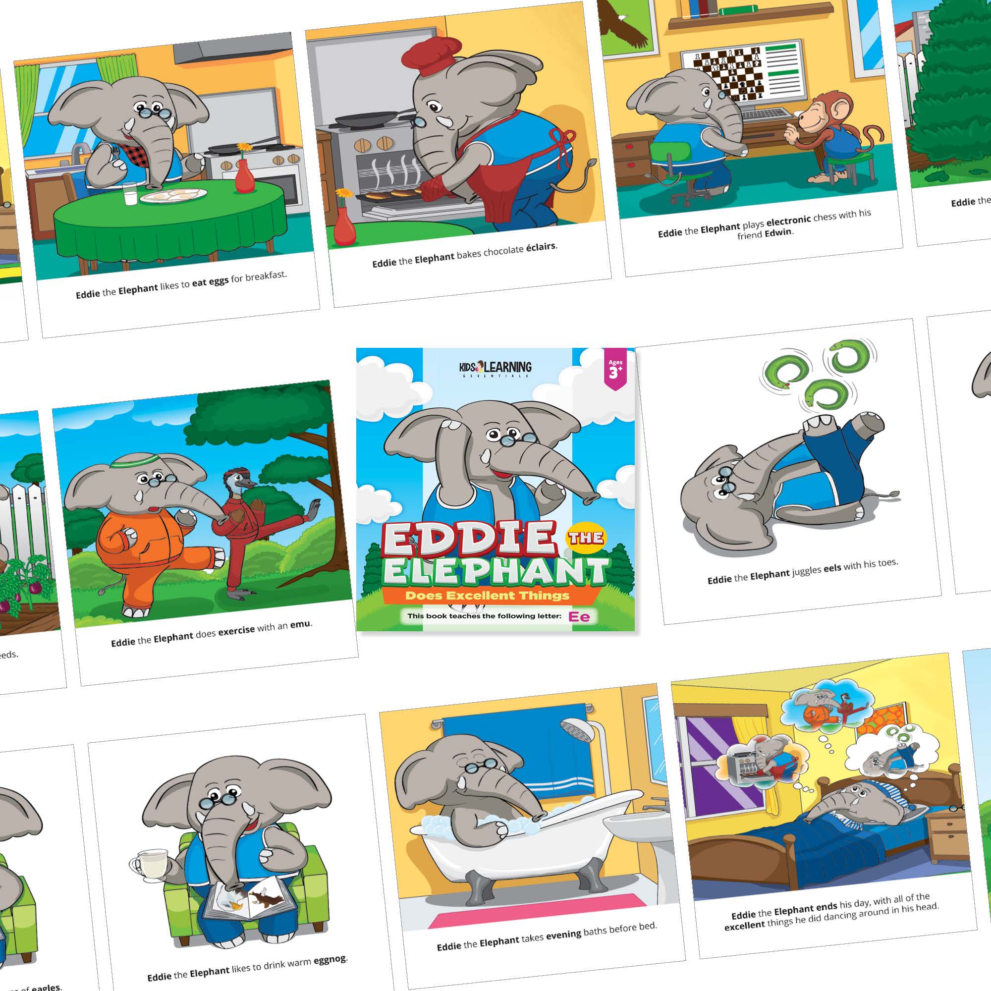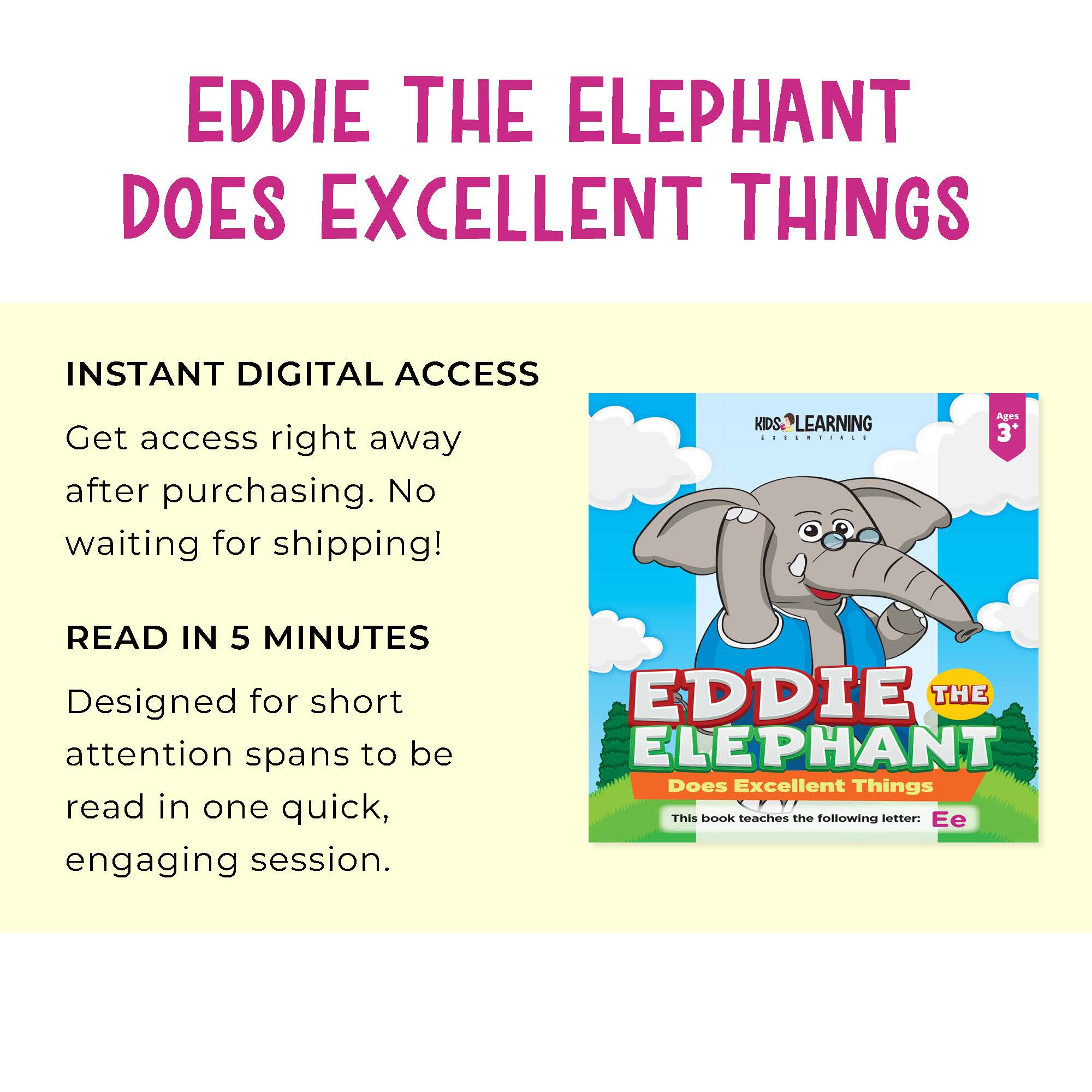 Explore a day in the life of Eddie the Elephant as he eats eggs, exercises with emus, juggles eels, and uncovers dozens of “E” surprises! This interactive digital storybook invites your child to spot, say, and play with letter E words—turning every read-through into a joyful, confidence-building experience.