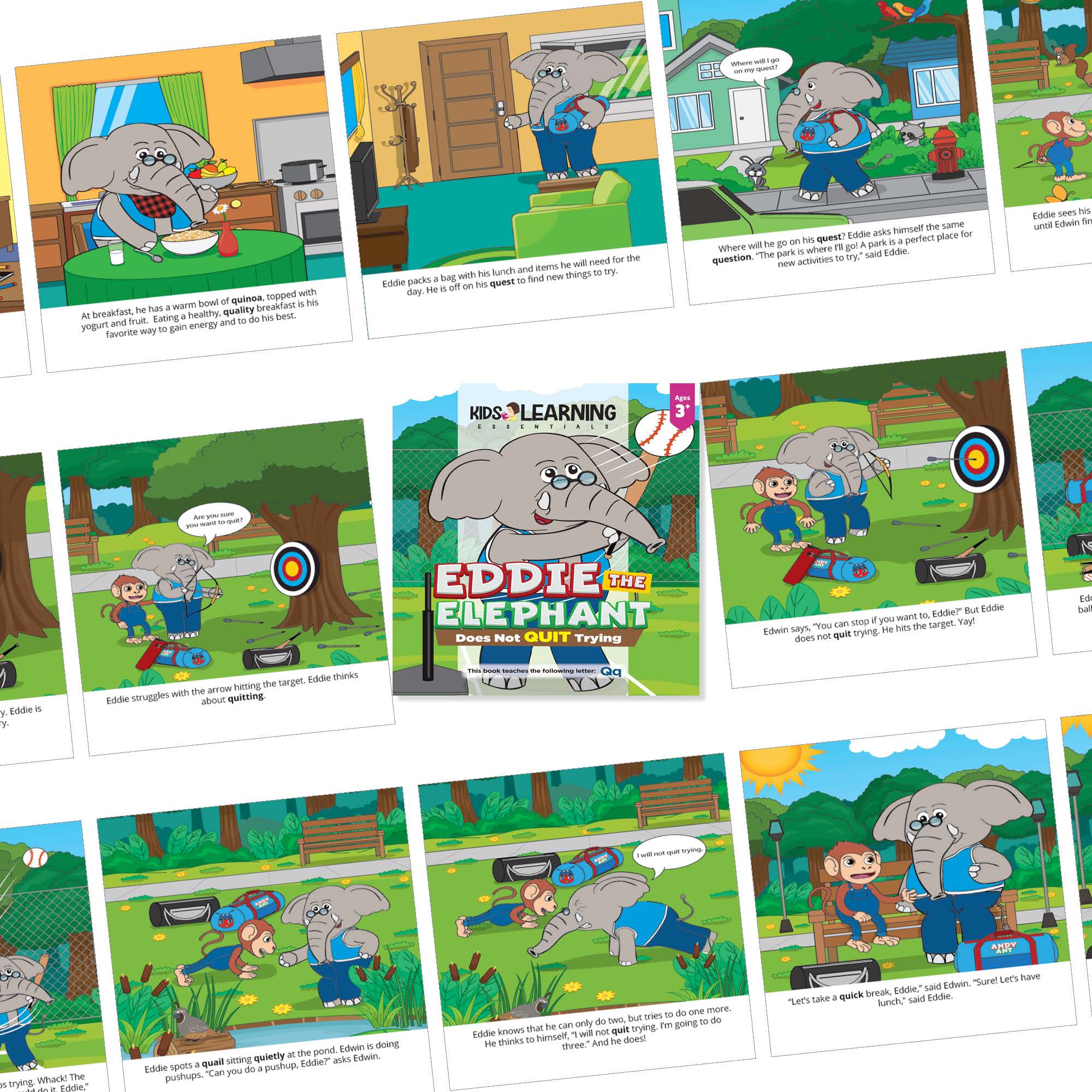 Meet “Eddie The Elephant Does Not QUIT Trying”—the breakthrough Letter Q digital storybook from Kids Learning Essentials that turns alphabet struggles into triumphs… and stress into smiles.