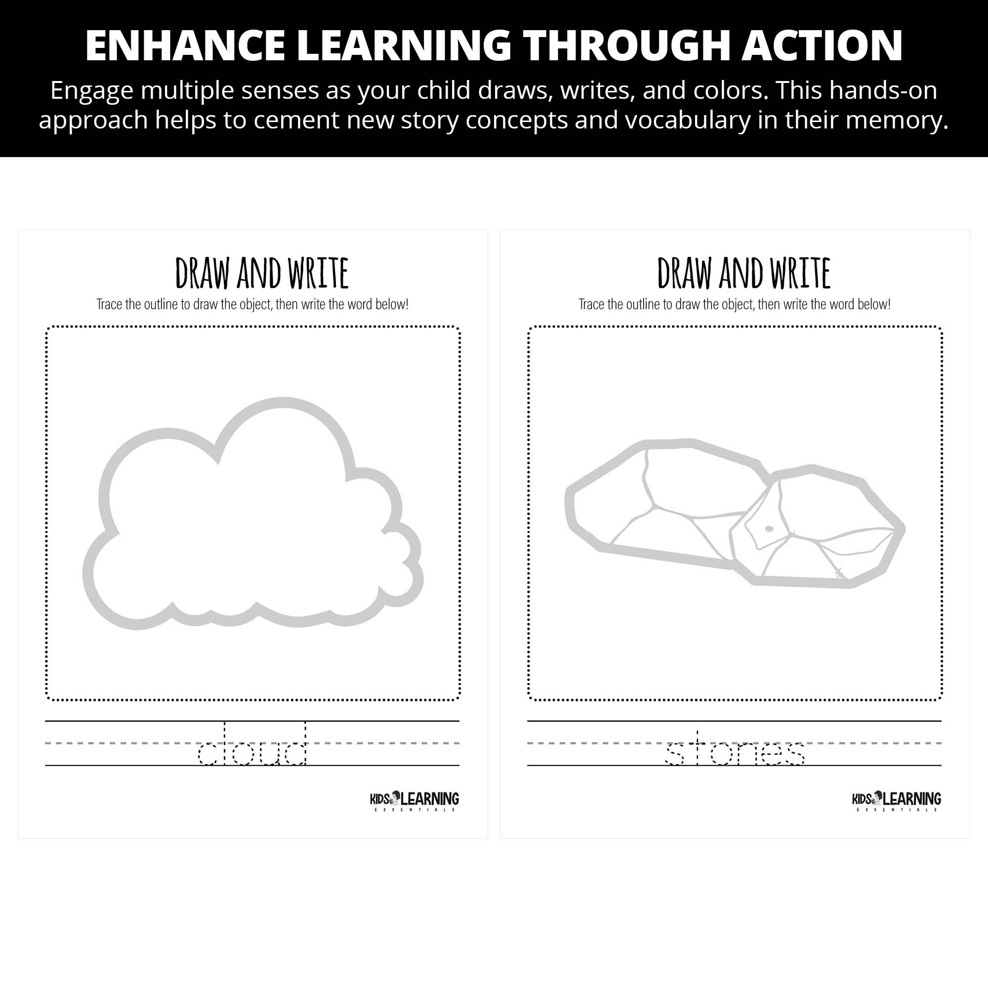Each page allows your child to trace charming illustrations from “flowers” to “flamingo” and “frog.” This approach enhances fine motor skills and instills confidence through practice and repetition.Story-Driven Vocabulary: