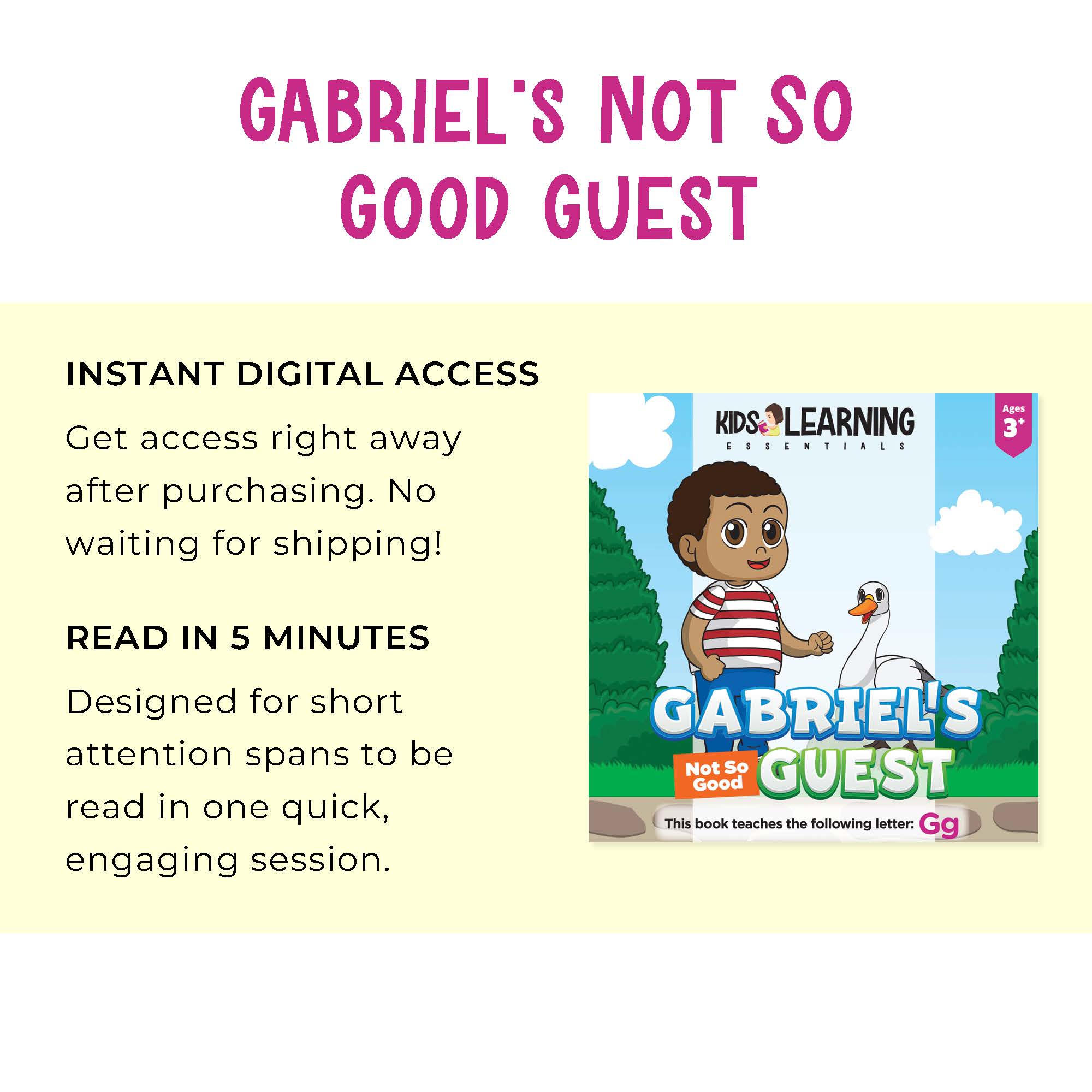 Introducing “Gabriel’s Not So Good Guest”—the game-changing digital storybook in the Kids Learning Essentials Alphabet Series, crafted for busy, conscientious parents who crave more than just another alphabet exercise.