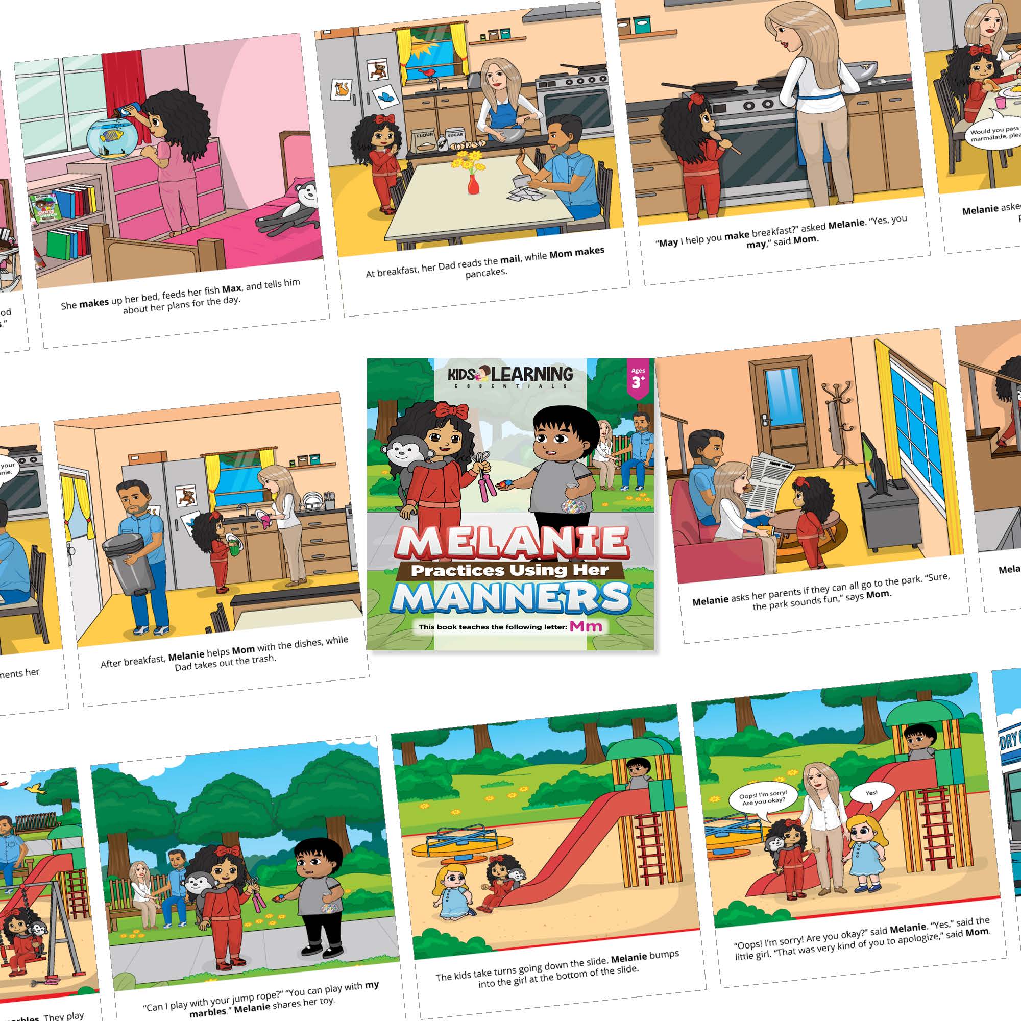 Introducing “Melanie Practices Using Her Manners”—the digital storybook parents like you have been searching for, where learning the letter “M” and modeling kindness go hand-in-hand.