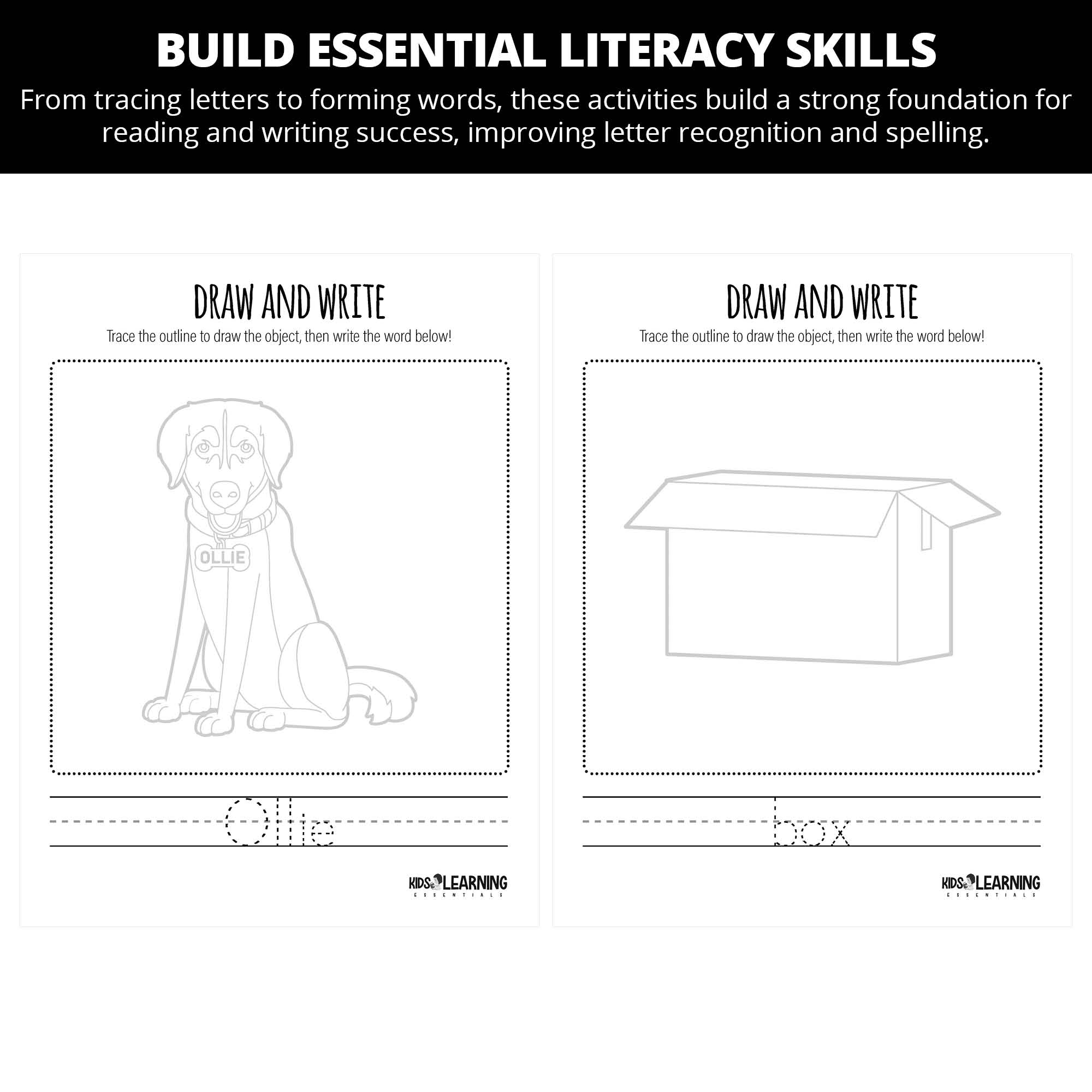 Each page invites your child to trace and draw fun objects like “owl,” “oaktree,” and “overalls,” then write the words below. This hands-on approach not only reinforces letter recognition but also enhances fine motor skills and creativity.