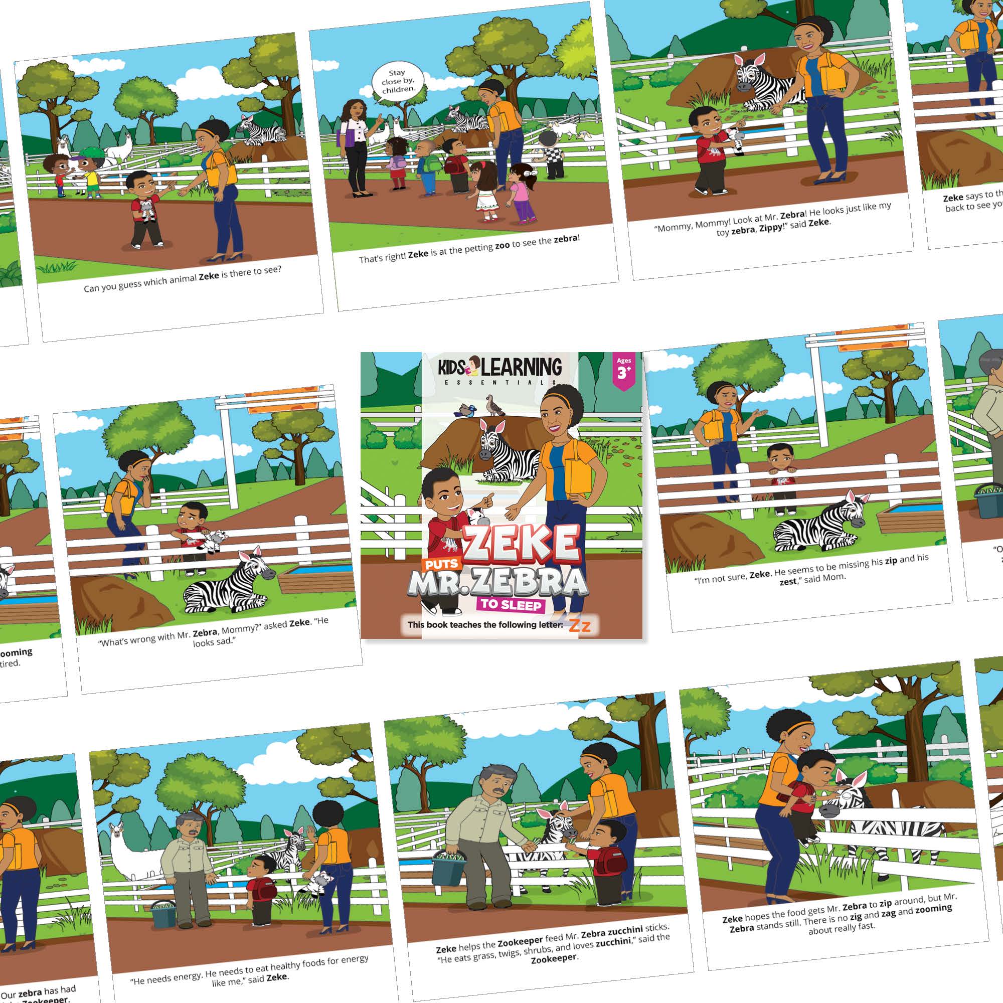 - A story where your child is the hero: Watch as Zeke, bursting with curiosity and kindness, helps his favorite zebra friend recover his “zip” by giving him exactly what every child needs—comfort, caring, and a beloved bedtime story. Along the way, your child discovers dozens of “Z” words, all in the context of adorable, everyday adventure.