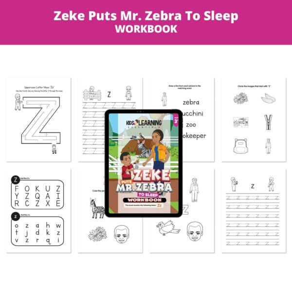 Introducing “Zeke Puts Mr. Zebra To Sleep: Letter Zz Worksheets”—the only story-based pack that turns learning the letter Zz into the highlight of your child’s day (and a proud parenting win for you).