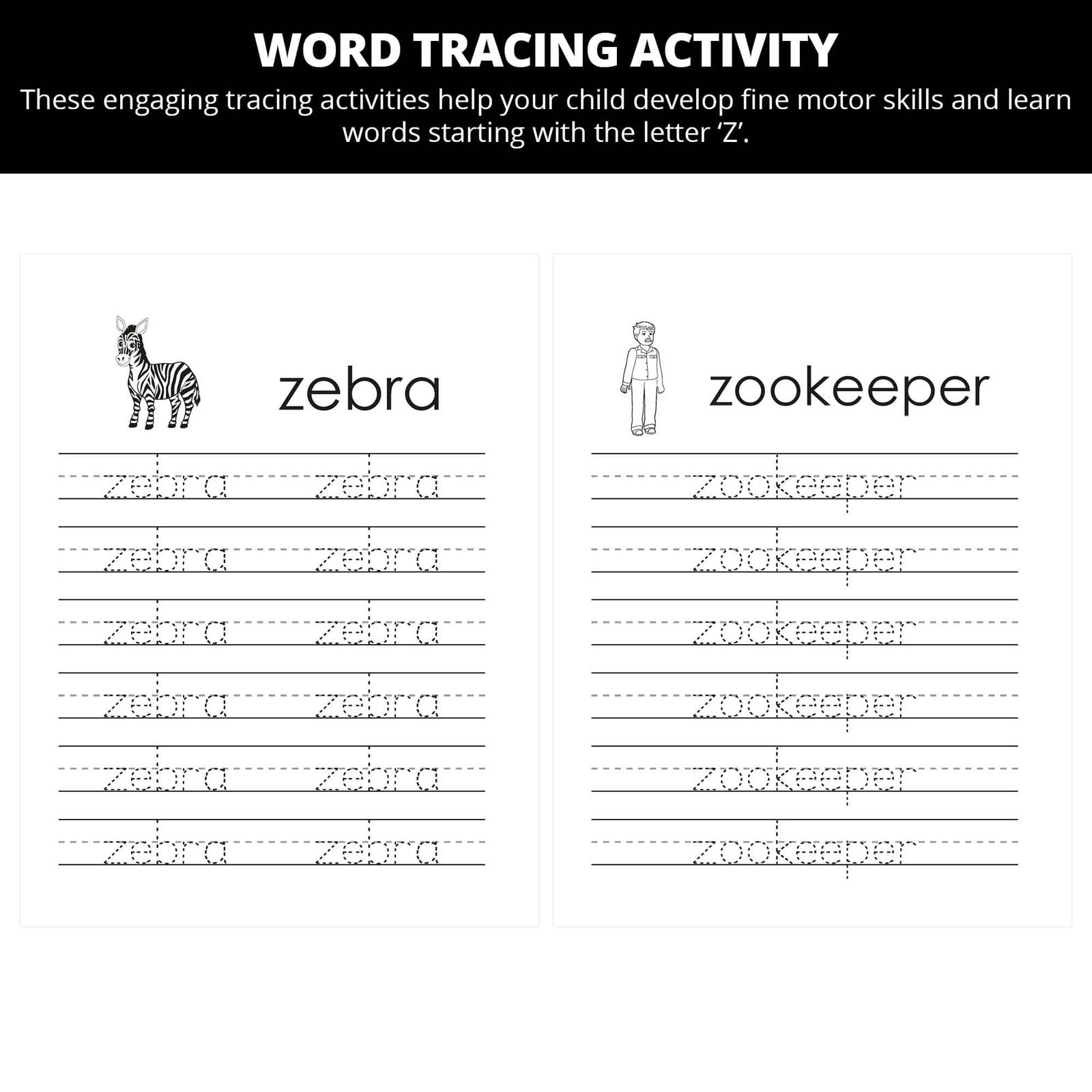 • Handwriting pages to master both uppercase and lowercase Zz (with fun word tracing!)